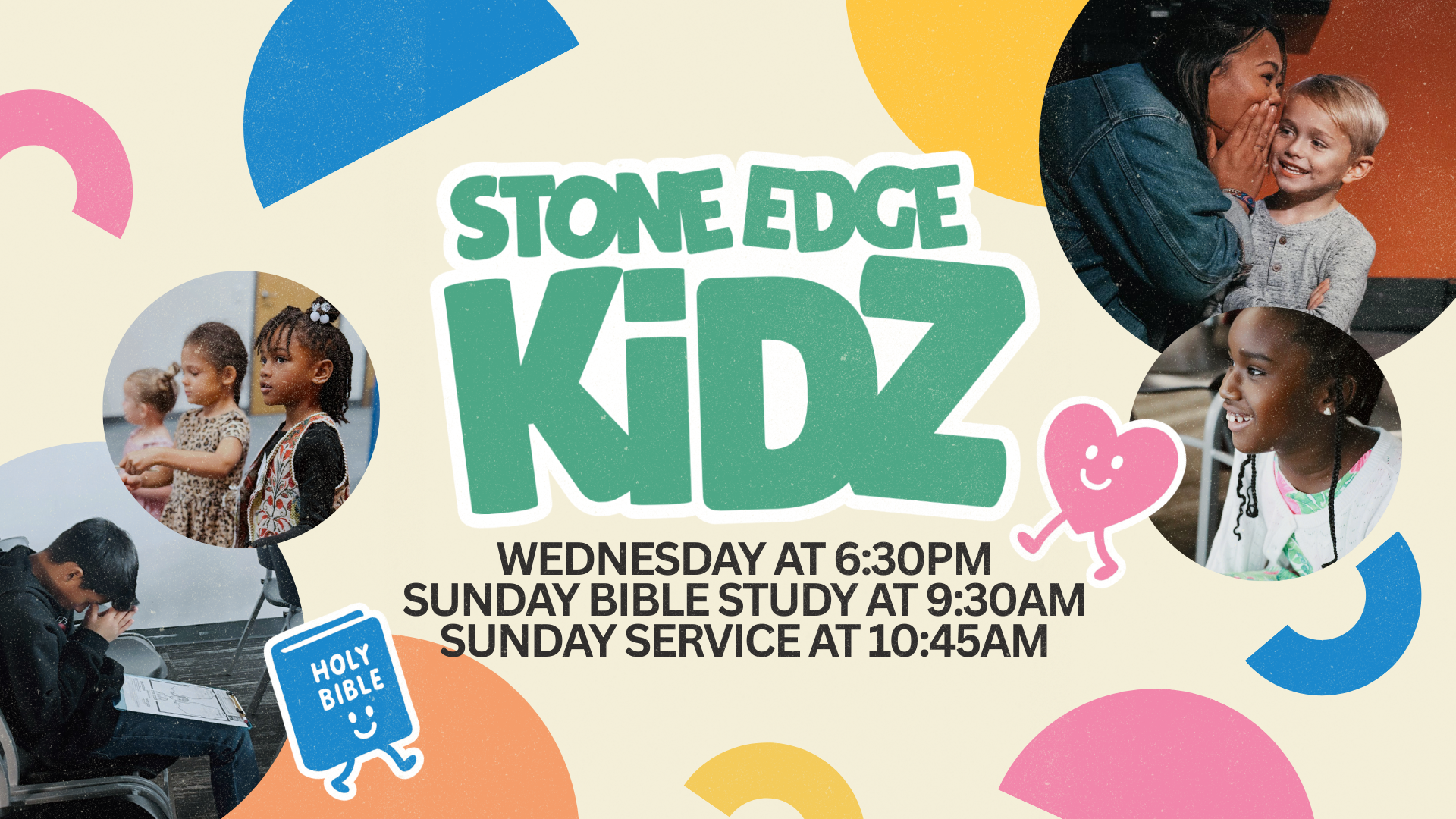 Stone Edge Kidz is available during every Sunday service for infants through elementary-age children, with secure check-in and trained, background-checked volunteers. If it’s your first visit, our team will guide you through the entire process.